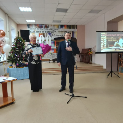 От лица главы администрации района Ю.В. Мишанкова поздравил его первый заместитель А.И. Хиценко и вручил сертификат на 50 тысяч рублей. Также поздравили руководитель отдела культуры Т.В. Гозенко, главный инспектор образования и молодежной политики Е.В.Бурлакина, заведующий детским садом №9 Н.В.Лисица. Теплые слова в адрес библиотеки прозвучали от Н.И.Герасимовой, бывшей заведующей сектора краеведения.