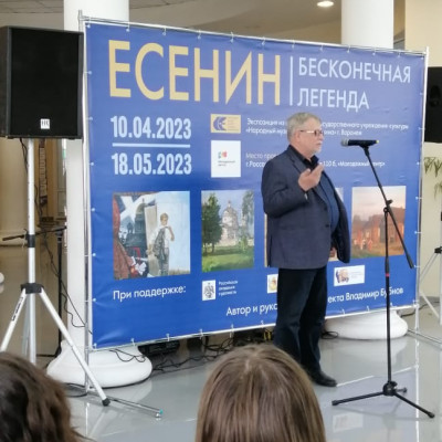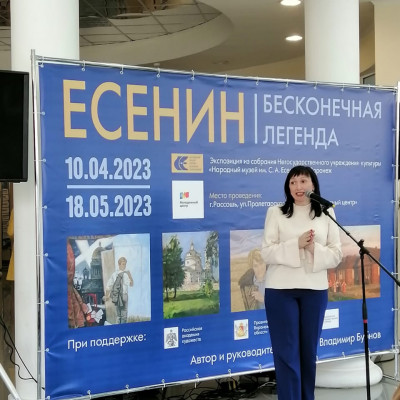 10 апреля в Картинной галерее Молодёжного центра состоялось открытие художественной выставки «Есенин. Бесконечная легенда», посвященной памяти великого русского поэта. В экспозиции представлены скульптуры и картины, написанные на трёх пленэрах на родине С.Есенина в с.Константиново. Среди авторов народные и заслуженные художники России, члены Российской академии художеств и члены творческих Союзов из Москвы и Московской области, Воронежа и Липецка, Тамбова и Пензы. Выставка организованна меценатом и основателем Народного музея С.Есенина в Воронеже - В.А.Бубновым, заслуженным работником культуры РФ, заслуженным деятелем искусств Воронежской области, членом СХР, директором Воронежского художественного училища, членом-корреспондентом Российской академии художеств - С.П.Гулевским. На открытии выступили: В.А. Бубнов – меценат и организатор проекта «Есенин. Бесконечная легенда»; С.П. Гулевский - заслуженный работник культуры РФ, заслуженный деятель искусств Воронежской области, член СХР, директор Воронежского художественного училища, член-корреспондент Российской академии художеств; А.С.Золотых – Заслуженный художник РФ, почётный член РАХ, член СХР, преподаватель Воронежского художественного училища; В.М. Сисюк – глава Россошанского муниципального района: Т.В. Гозенко – руководитель отдела культуры. Звучала классическая музыка в исполнении оркестра ДШИ «Фантазия», стихи и песни на слова С.Есеннина исполнили: В.В.Стрех – заслуженный работник культуры Воронежской области, финалист конкурса «Голос 60+», Р.Ашихмина и У. Савиных – актёры драмтеатра «Рамс», В.Шевелёва - автор и исполнитель песен г.Донецк, Ю.Савельев – исполнитель песен. Мероприятие подготовила и провела Н.Н. Басова, директор Межпоселенческой библиотеки им. А.Т. Прасолова. Выставка продлится до 19 мая. Вход свободный. Ежедневно с 9.00 до 19.00 ч.